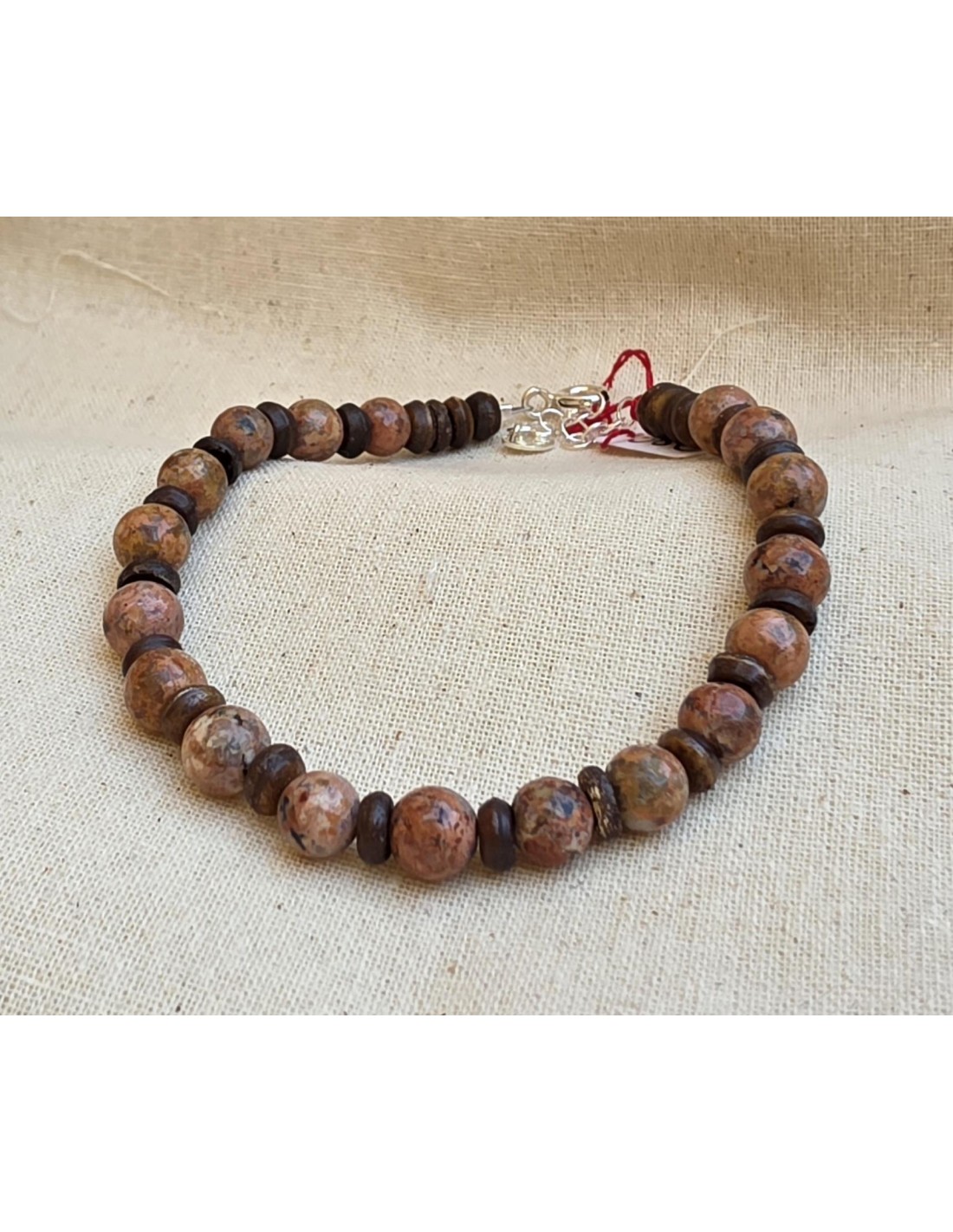 Bracelet en pierres de Corse et argent 925 et billes de bois.
